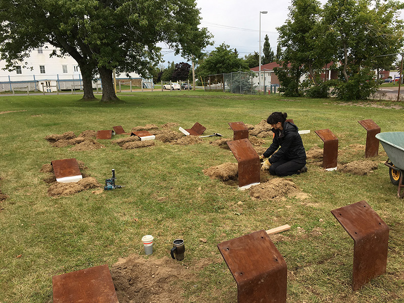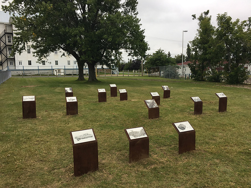 Beginning in the late 18th century, leprosy was a public health challenge along sections of the eastern coast of New Brunswick. Mostly afflicting Acadians, the problem was so severe that in 1844 the New Brunswick Board of Health sent thirty people suffering from the disease to Sheldrake Island, at the mouth of the Miramichi River, far from their home communities. They endured difficult conditions, and fifteen individuals died. Others resisted their confinement by escaping to the mainland; and there was significant outrage over their situation, fueled by Acadian resentment of a forced resettlement that conjured up memories of their eighteenth century deportation. This resentment led to the relocation of the patients in 1849 to a new facility, closer to their families, in Tracadie, the site for the project's commemorative artwork.